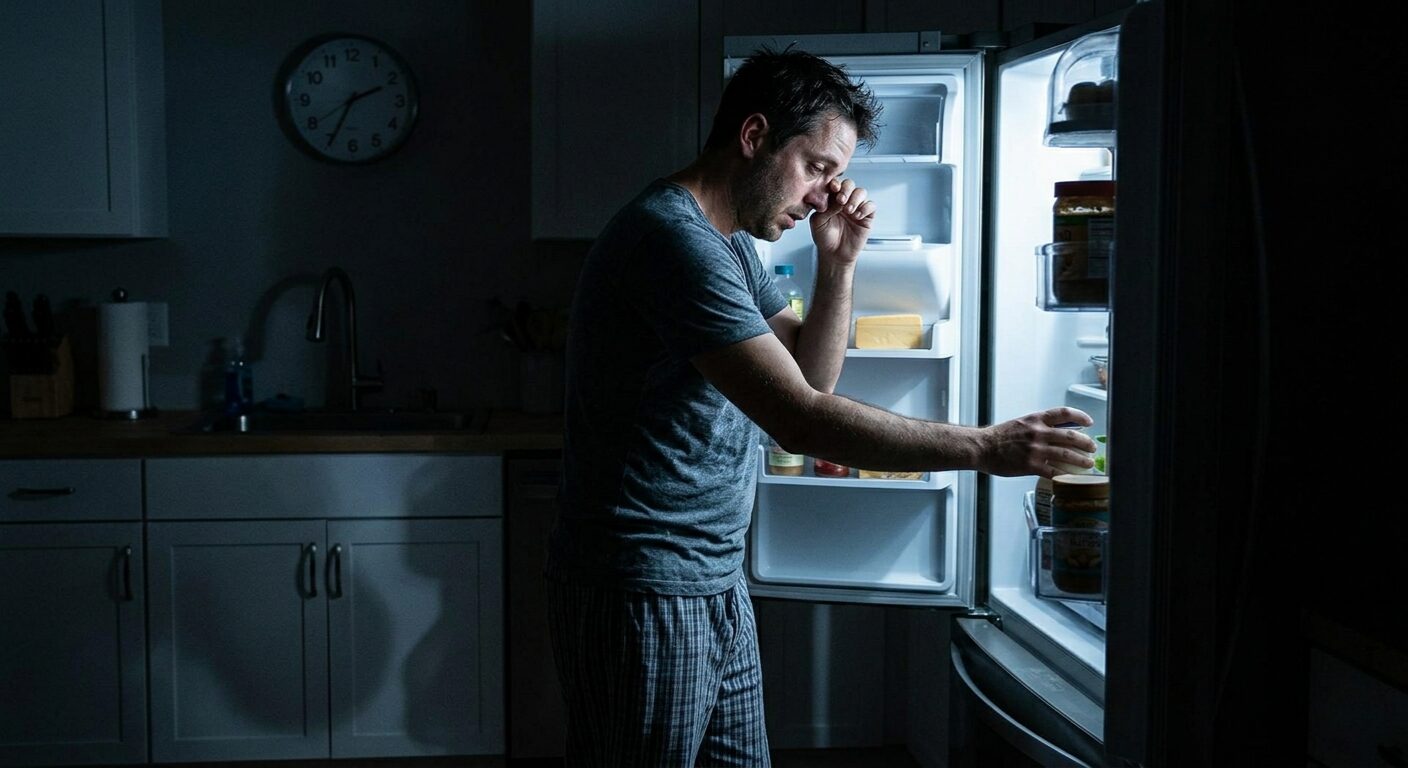 The inform: sweating accompanied by racing coronary heart, nervousness, or starvation. Signs typically seem 6–8 hours after a high-carbohydrate dinner. A protein-fat snack earlier than mattress incessantly resolves or reduces episodes inside days.